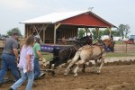 always liked horse pulls because the horses really do LOVE what they are doing. Some of these big guys eyed up the stone boat each time they were brought to it. These horses are trained to PULL, many of them know to listen for the judge’s whistle to approach, and then listen for the “clink” of the metal pin dropping into the hitch. Many times, these teams anticipate the “clink” and take off before they’ve been hooked up.