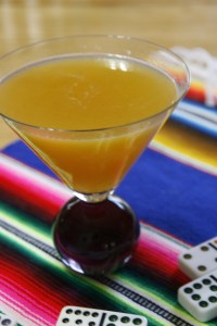 Shake vigorously and pour into a chilled cocktail glass. Garnish with an apricot: dried, fresh or canned.