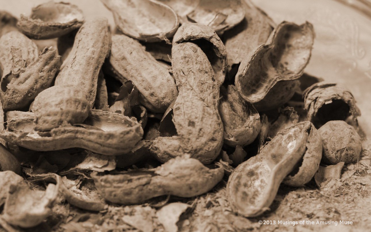 I was sitting at the dining table the other day, working on some things and there was this fancy, embossed-glass pie plate in front of me, laden with salted, roasted, in-shell peanuts, tempting me. I love salted, roasted, in-shell peanuts. I yielded to temptation and I annihilated those peanuts. Then I thought, “I should take a picture.” Perhaps it’s a bit morbid, this photo of empty husks laying in a heap… dried out and desiccated like little mummies waiting to be dumped into the unmarked grave of the compost bin. Mmm, delicious, little mummies. Morbid or not – I like the photo, and that’s what matters.