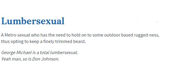 Lumbersexual? So I asked, “What in hell is a “lumbersexual?” She went on to explain that they were the newest incarnation of fashionable men, the urban, rugged “outdoors-men”. The “metrosexual” was on the way out and being a “lumbersexual” was in, $200 rucksacks and designer Eddie Bauer flannel shirts. She went on to say that this lumbersexual fad was not good for her dating life because she really liked rugged outdoors-men and now she was getting confused as to if men she wanted to date were actual rugged outdoors-men or just the lumbersexual wannabes.