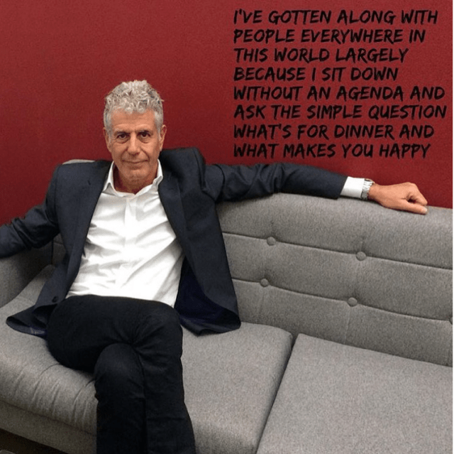 I glommed onto watching his television shows early. The premise was fascinating to me because, though I watched Food Network, his show wasn’t necessarily about the food, though food always played a part. It was about humanity. It was about Us. The capital ‘U’, Us. It was a program that showed Us, that we humans are all just trying to live, to get by, and as much as we are different – we’re the same. He reminded us that we could have fantastic conversations with people who hold fundamentally different opinions from ourselves and be better for it.